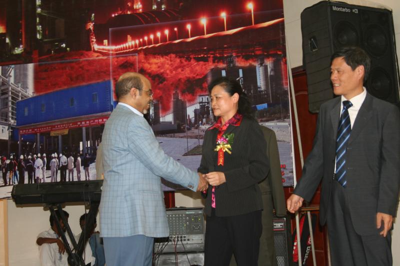 2011年6月25日,在合肥院總承包的埃塞俄比亞Messebo水泥廠竣工典禮上,埃塞總理梅勒斯與建材總院總經理姚燕親切握手。合肥院在非洲市場承接多個水泥生產線項目,廣受客戶好評。